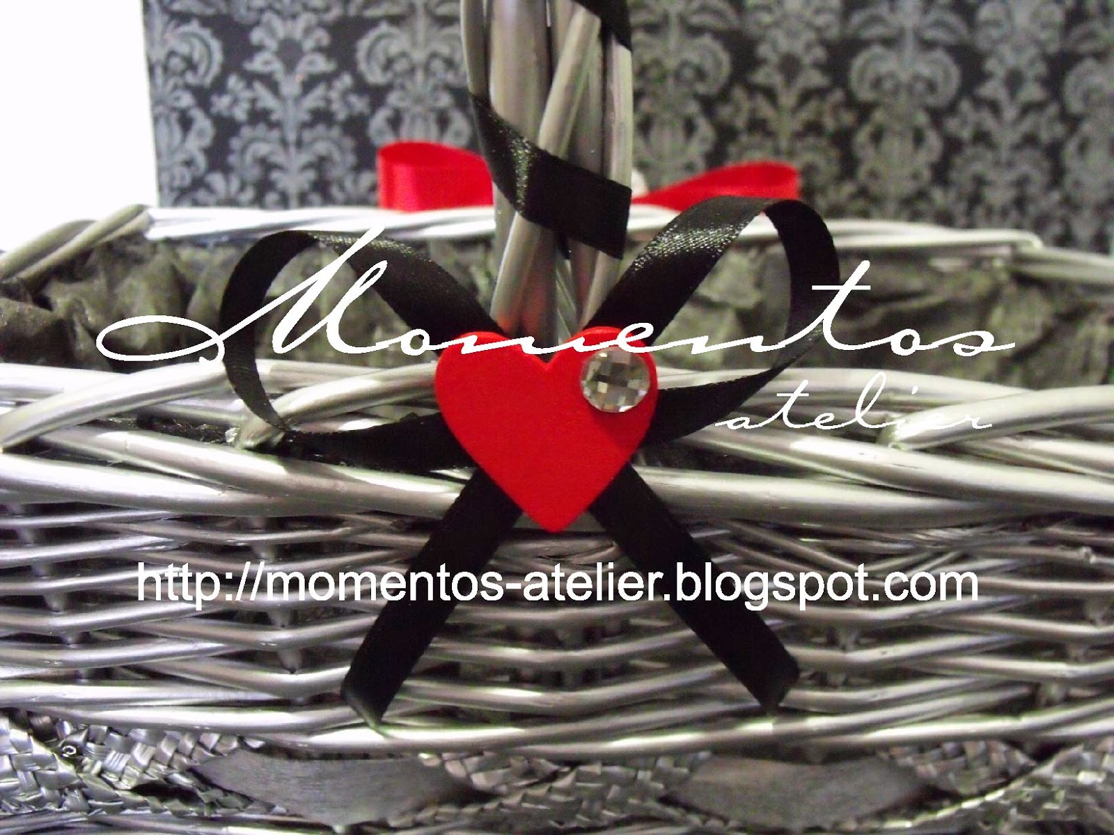 Para a Daniela e o Tiago realizei os Marcadores de mesa, a Caixa de honra, os Cartões de honra, as Ementas, a Caneta pena com suporte, os Cestos, o Cestinho SOS e o Placard. Os tons escolhidos foram o Preto, Prateado e o Vermelho.