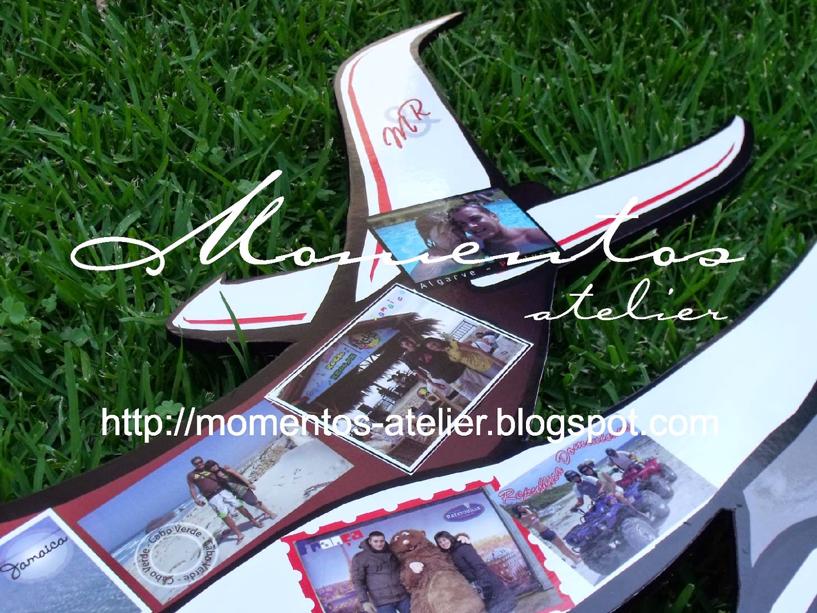 Bases para os copos, placard em formato de avião e mala de honra para mensagens dos Noivos Miliza & Rúben para o Tema Viagens.