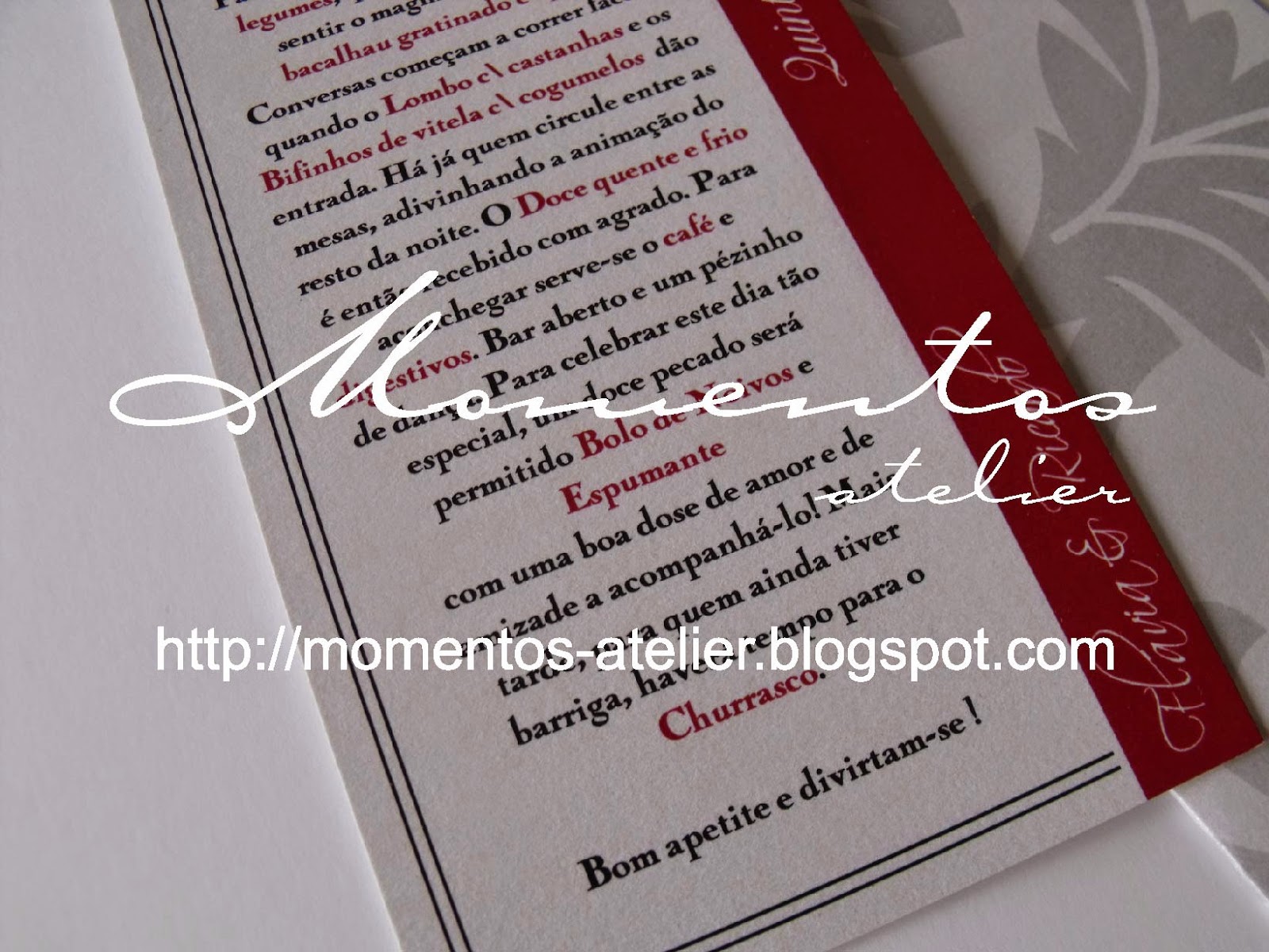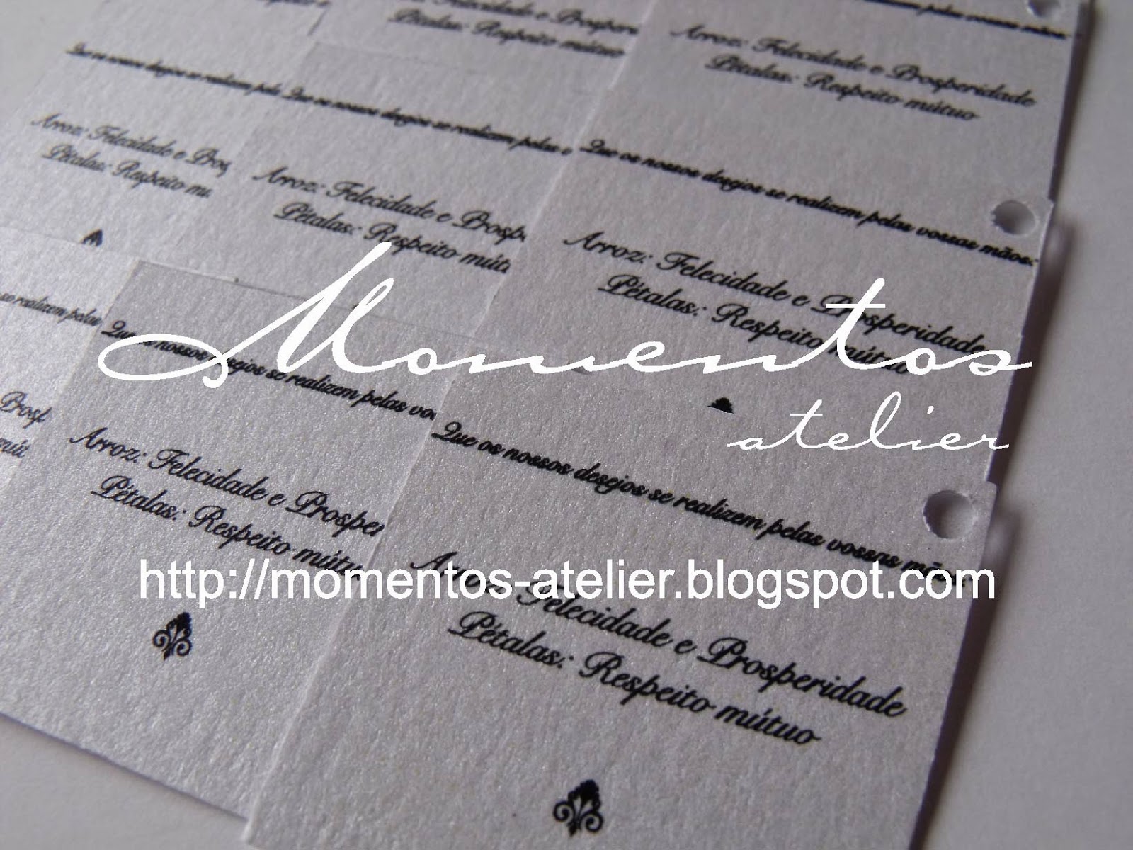 Ementas, Cestinho SOS, Rótulos para garrafas, Caneta pena com suporte, Etiquetas para cones de arroz, Canhões de pétalas, Lacinhos para lembranças realizado para os noivos Flávia & Ricardo.