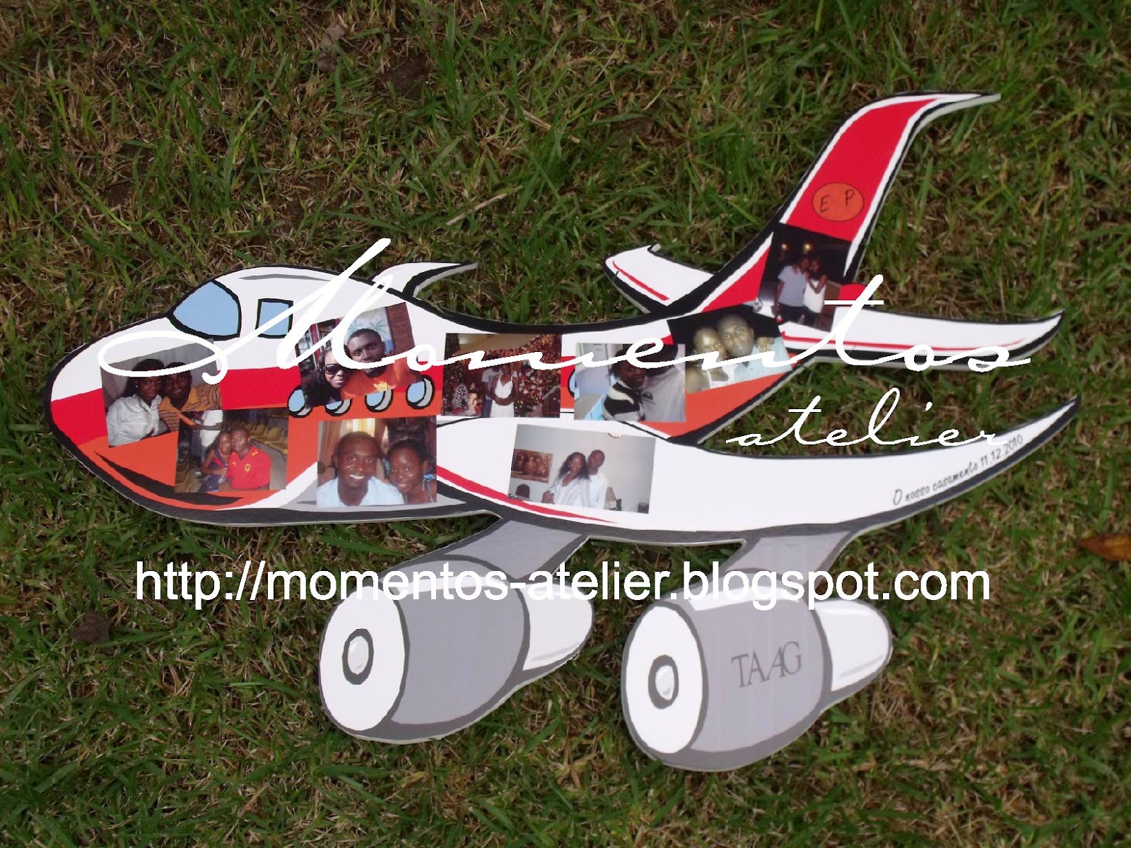 Convites, Etiquetas dos convites com nomes dos convidados, Cartões de lista de presentes, Placard em formato de avião, Ementas e Marcadores.