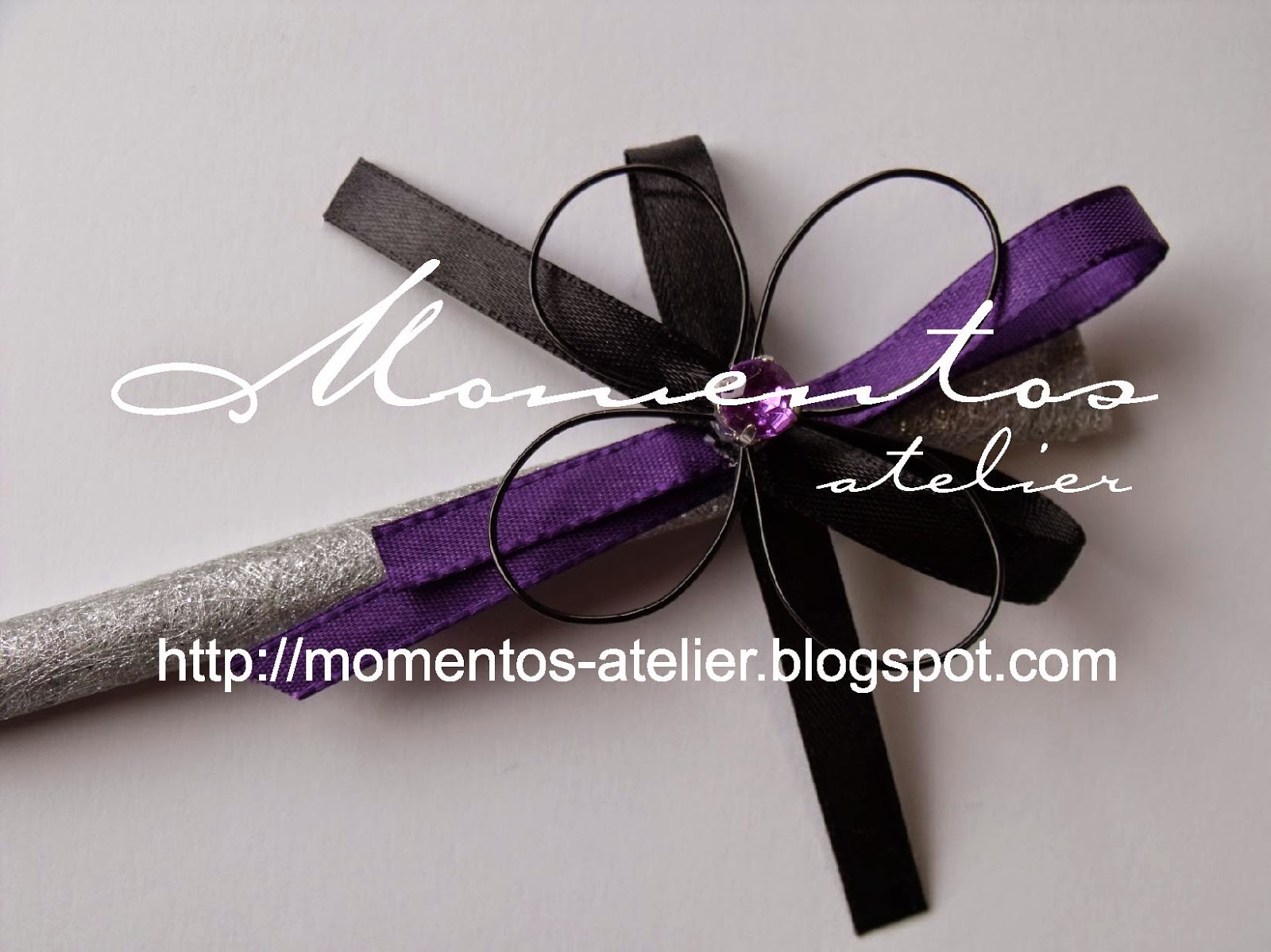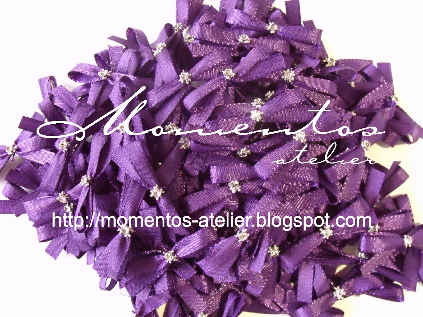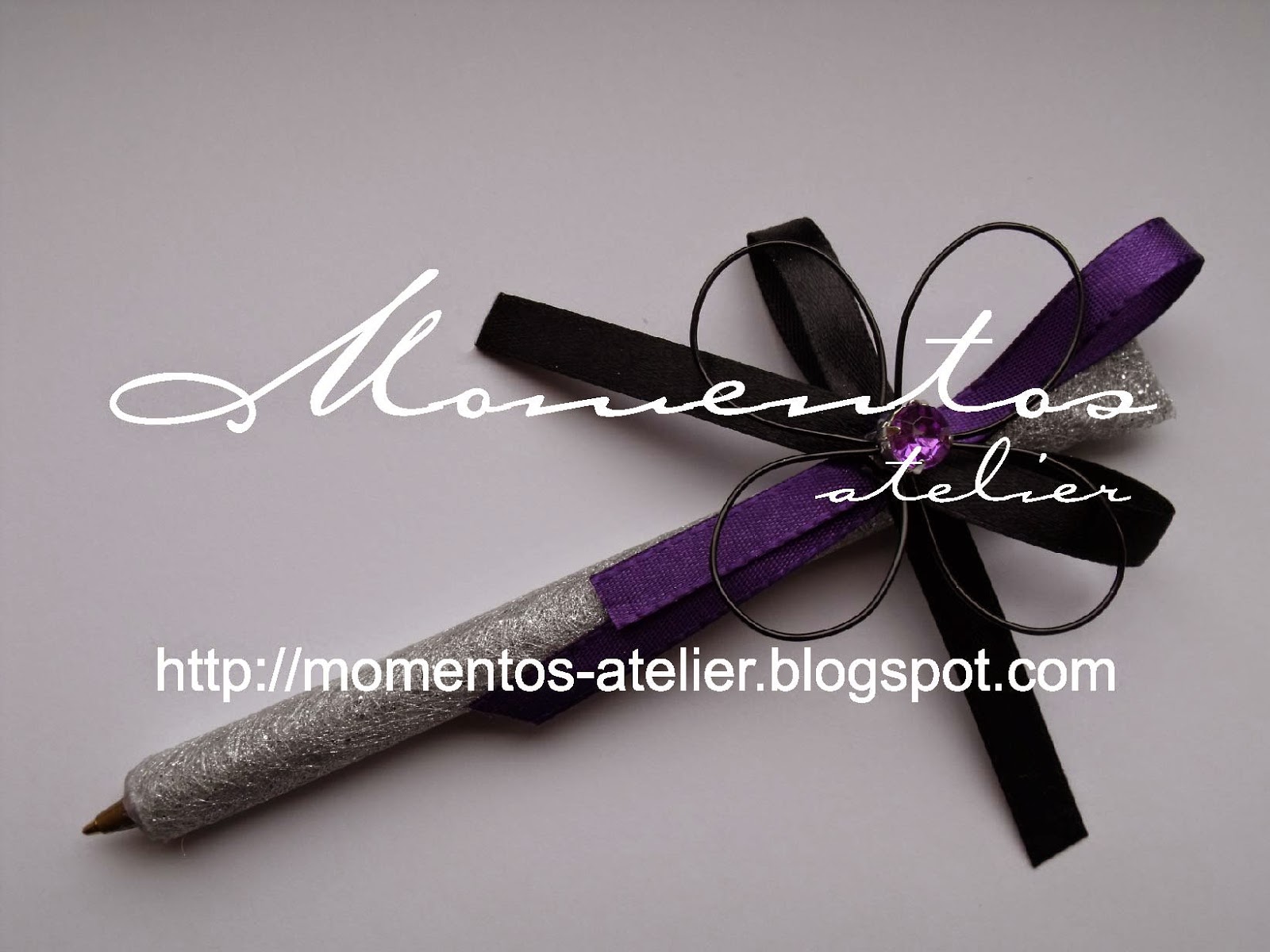 Caneta para livro de honra e Laçinhos nos tons Prateado, Preto e Roxo da noiva Tânia.