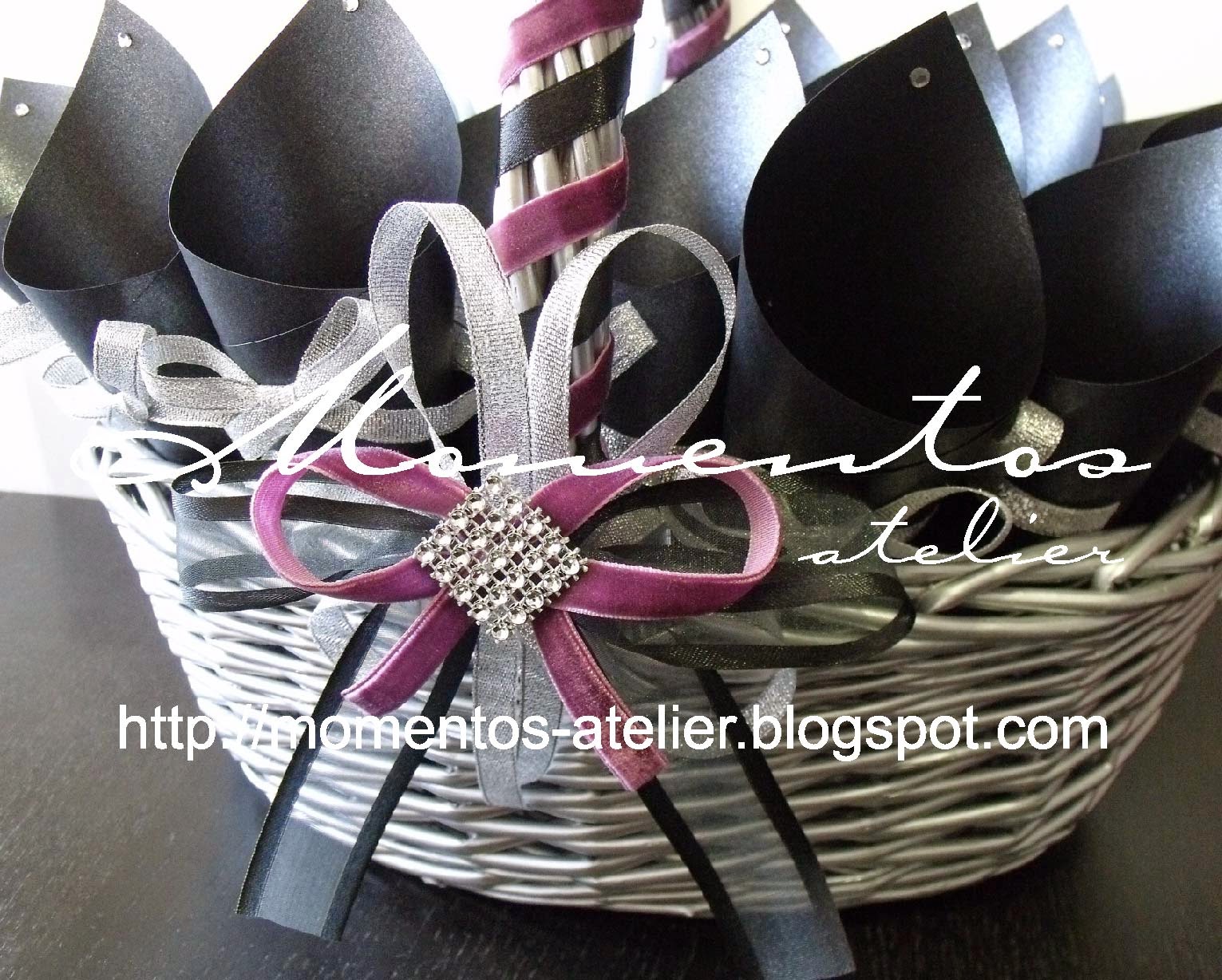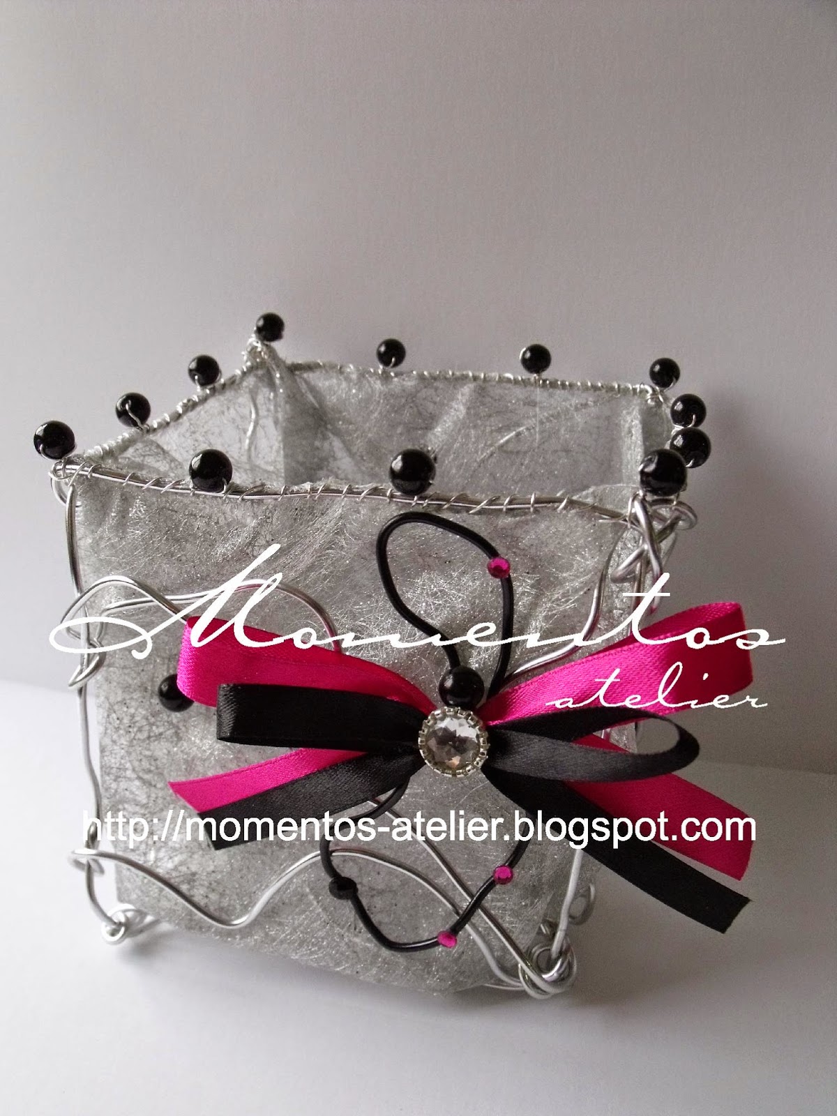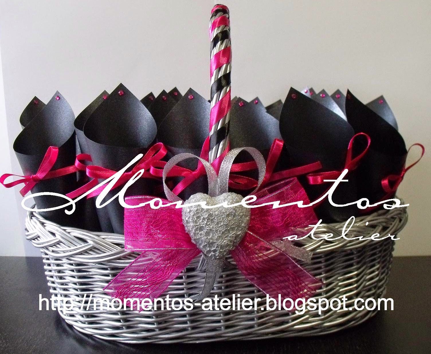 Cestinho SOS, Cones e Cestos realizados nos tons Prateado, Fuschia e Preto para a Ana e o Pedro.