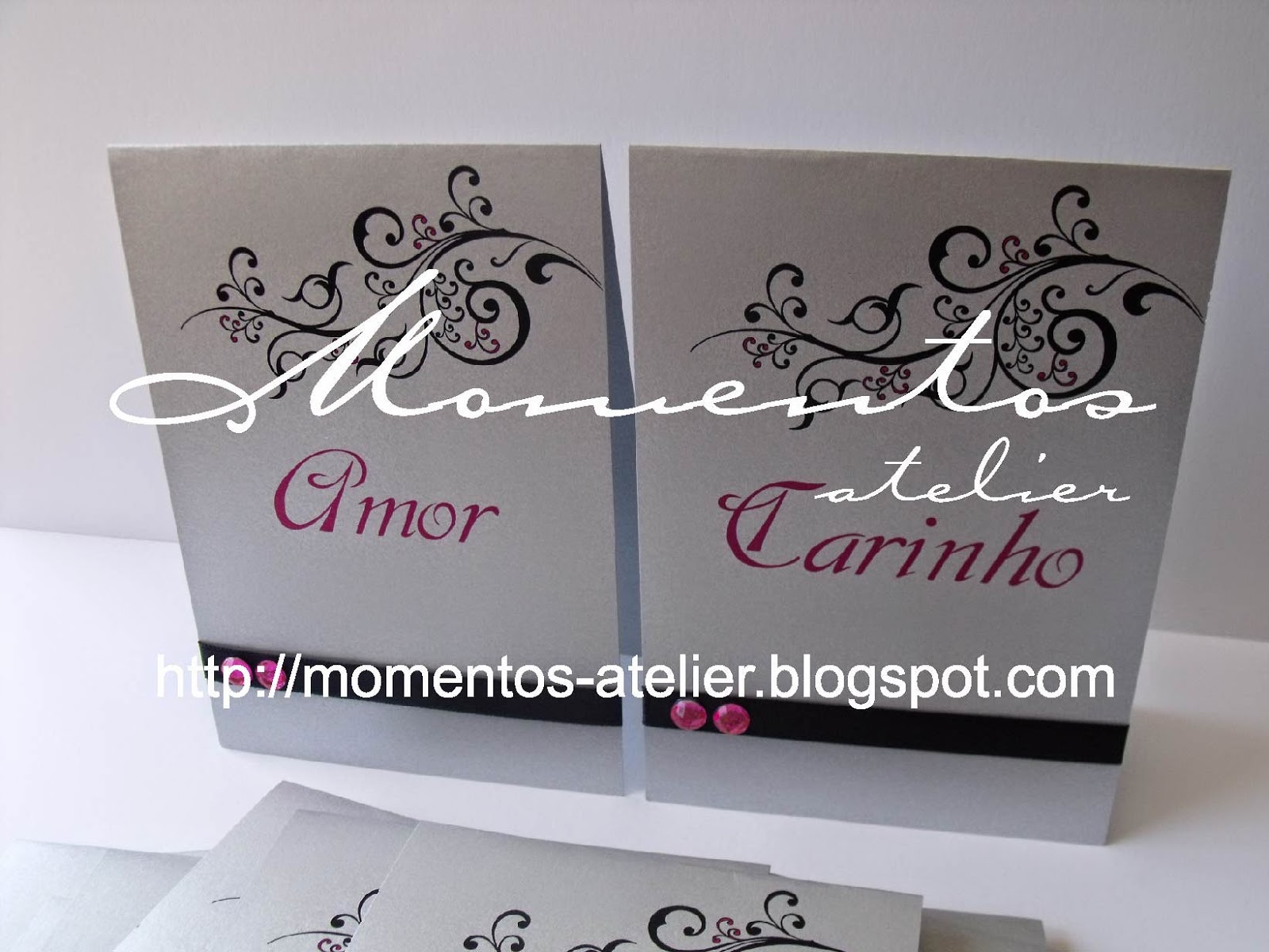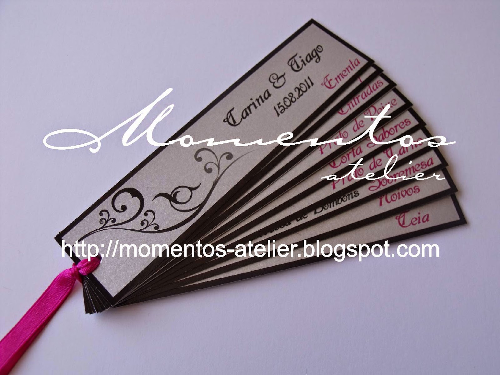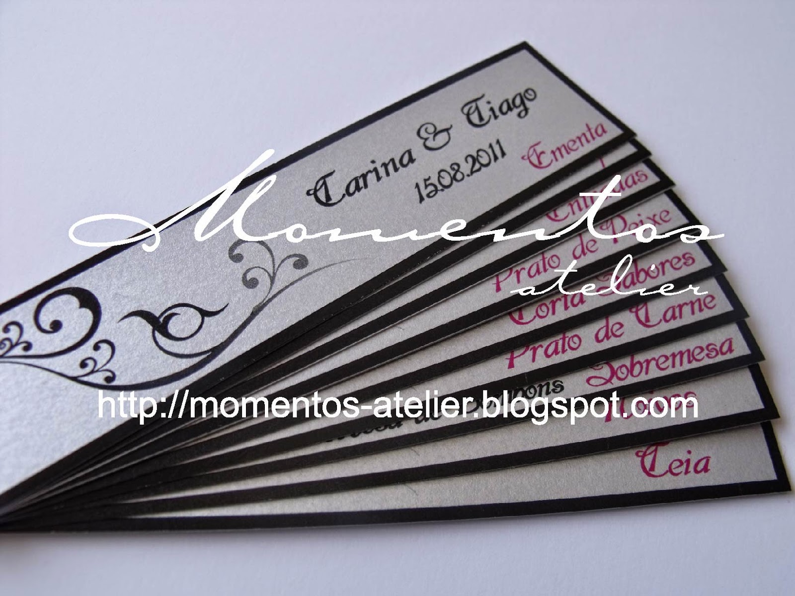 Ementas, Marcadores de mesa e Placard para os Noivos Carina & Tiago nos tons Fuschia, Preto e Prateado.