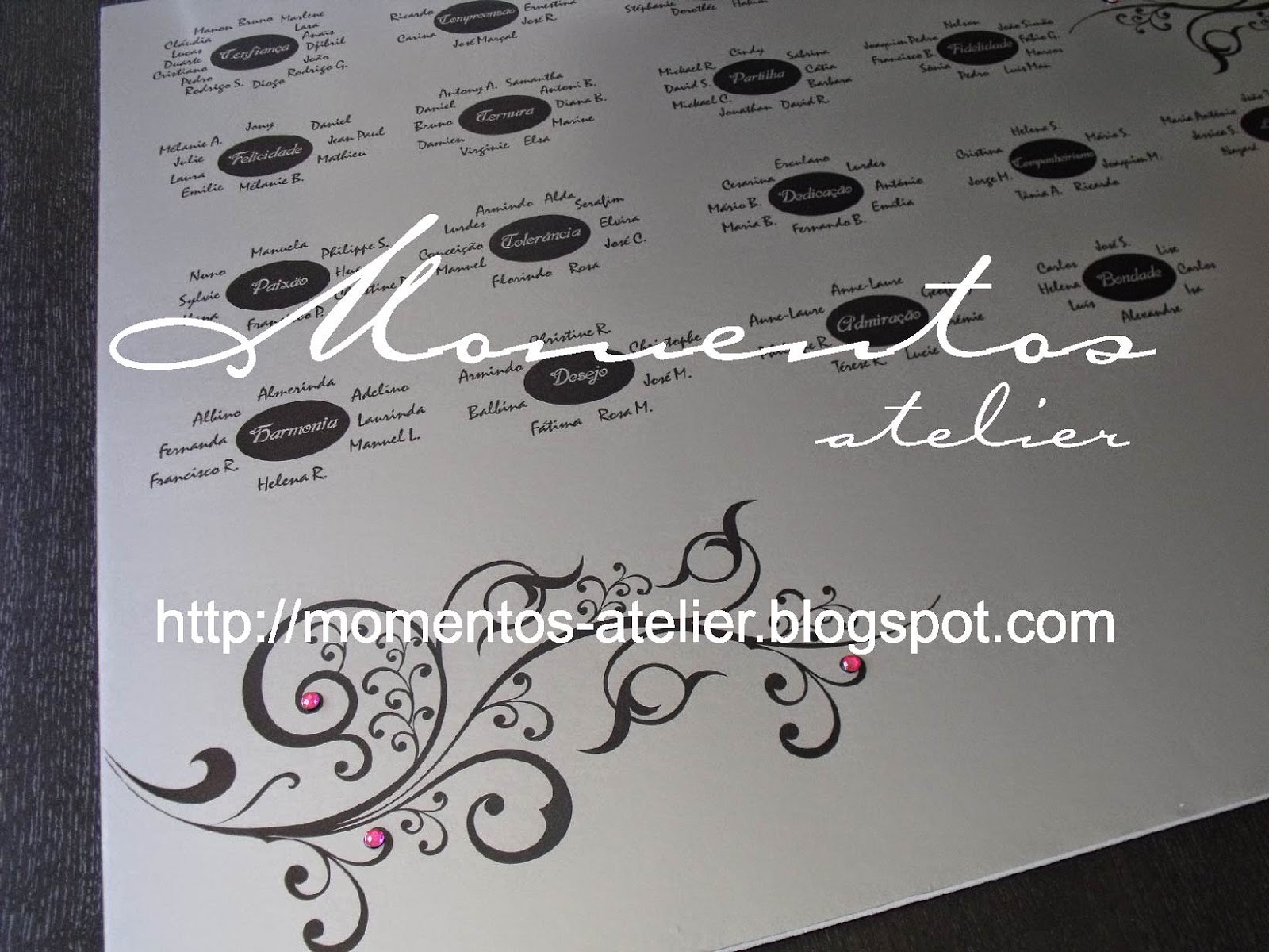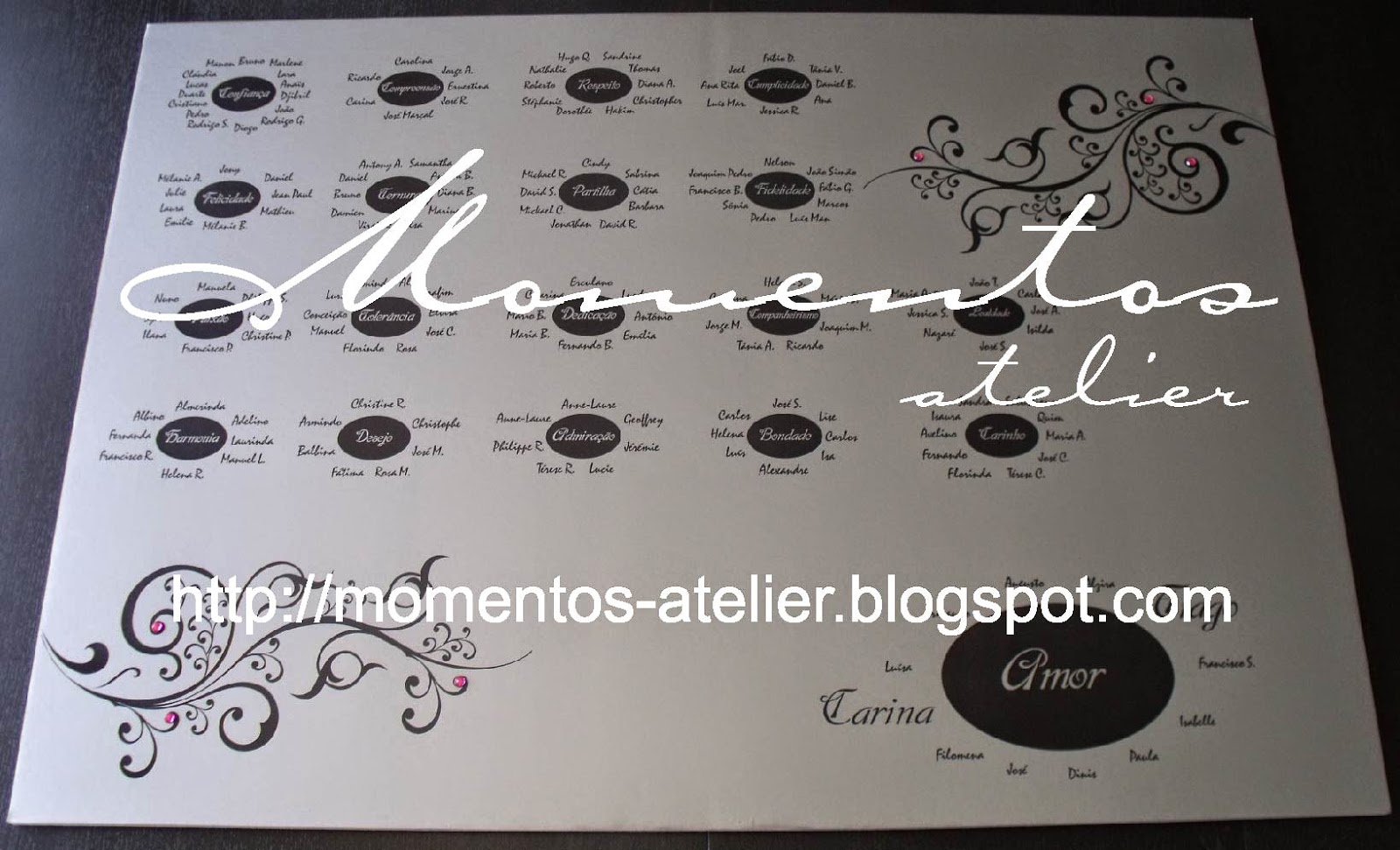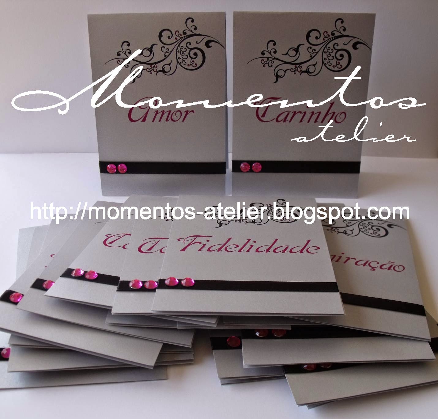 Ementas, Marcadores de mesa e Placard para os Noivos Carina & Tiago nos tons Fuschia, Preto e Prateado.