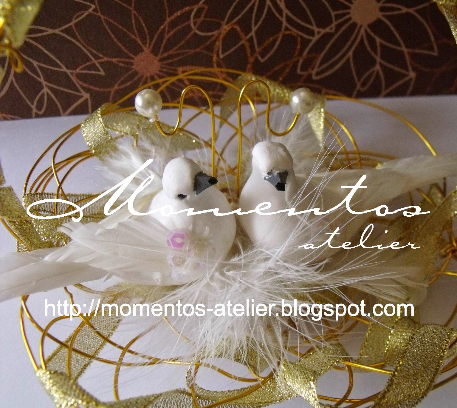 A Sandra e o Pedro usaram no seu dia o Castanho e o Dourado, fica aqui o Porta alianças, o Cestinho SOS e a Caneta com suporte realizados para eles...